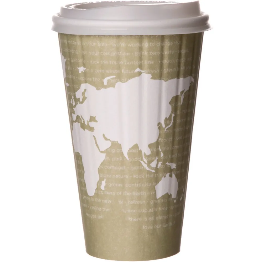 (600/Carton) 16 oz. World Art Renewable and Compostable Insulated PLA Hot Cups – EPBNHC16WD