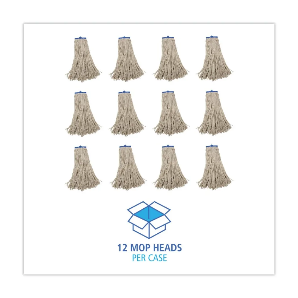 Boardwalk BWK720C 20 oz. Economical Lie-Flat Cotton Fiber Mop Head – White (12/Carton)