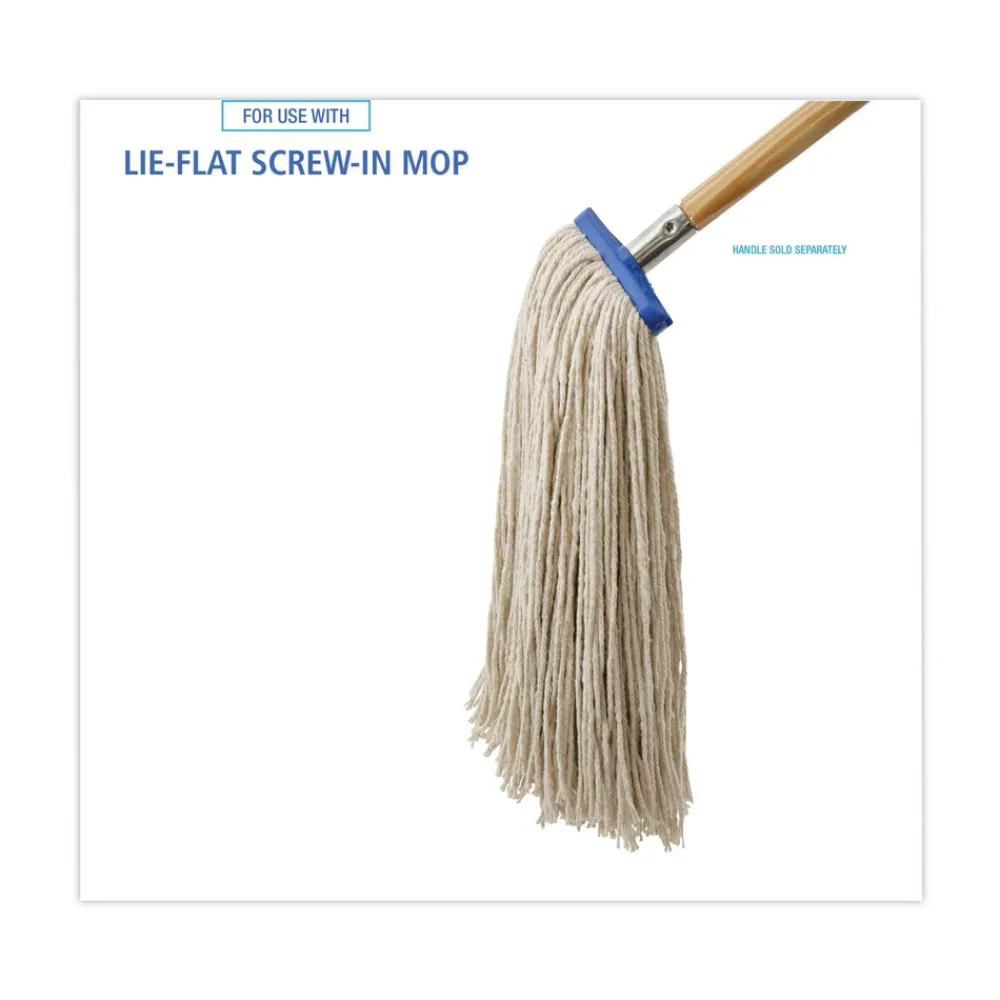 Boardwalk Cut-End Lie-Flat Economical Mop Head is constructed with premium, 4-ply yarn for added absorbency. Built with a standard 1/4 in. threaded bolt head for easy screw-in mop head change. The mop heads are held together and wrapped with a galvanized metal outerband for the utmost in durability. The mop lies flat on floor and is designed for use with a lie-flat screw-in mop handle, which is sold separately.