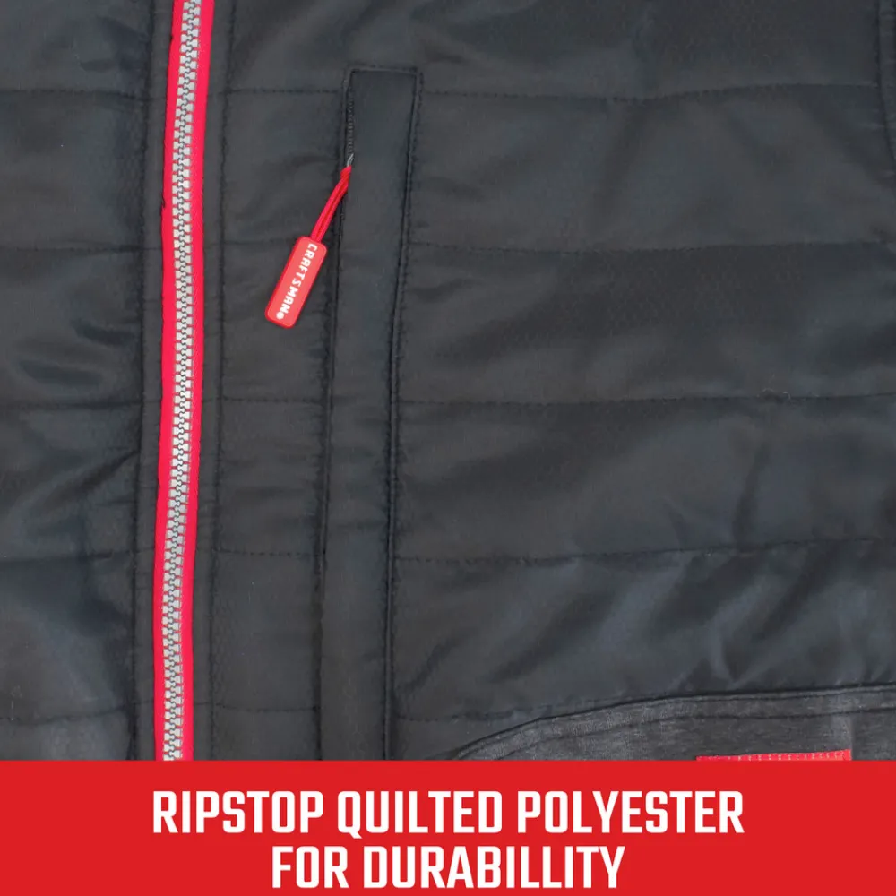 What makes this heated jacket a hybrid? This CRAFTSMAN heated jacket gives you the best of both worlds. The quilted ripstop of the outer shell provides the protection of a jacket while the knitted sleeves are less bulky than a jacket, providing the mobility and flexibility of a heavy-duty sweater or fleece.