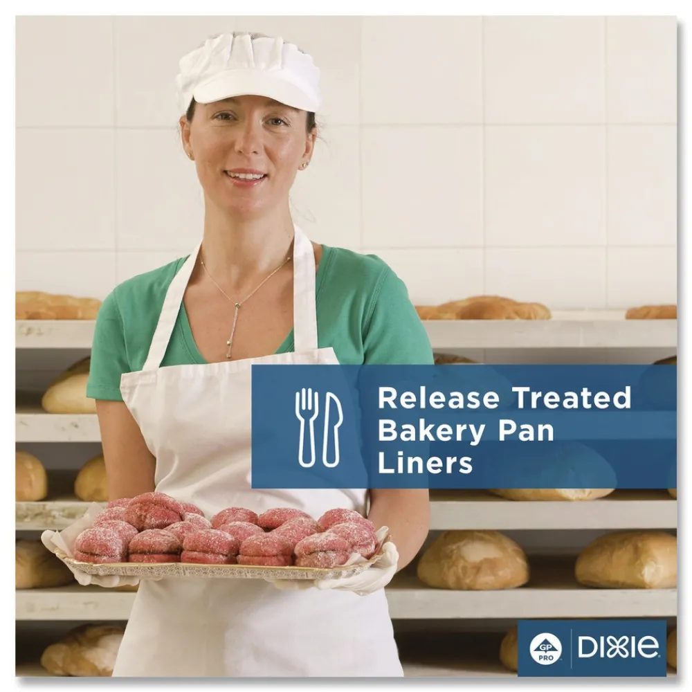 Greaseproof pan liners keep baked goods from coming into contact with pans. Liners lift off easily, preventing baked goods from sticking to pans and reducing cleanup time and cost. Able to withstand moderate oven temperatures of up to 400 Degree. Excellent grease holdout. Adequate for most breads, cookies and other basic bakery items. Eliminate bakery products sticking to baker pans, reduce or eliminate clean-up costs.