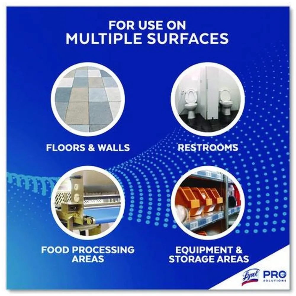 Optimize cleaning efficiency and meet high-volume sanitizing needs with Professional Lysol No Rinse Sanitizer Concentrate, ideal for use in food service and processing areas. Confidently uphold food code requirements with the no-rinse formula that’s perfect for a 3-bin sink and clean-in-place applications. Effectively sanitize food and drink preparation and service areas, hospitals, nursing homes, physician offices, hotels, and more. Help staff keep commercial kitchens, storage areas, and restrooms sanitized. Save time and money with the economical, concentrated formula that can be diluted on-site for up to 512 gallons of sanitizing solution in eating establishment areas.