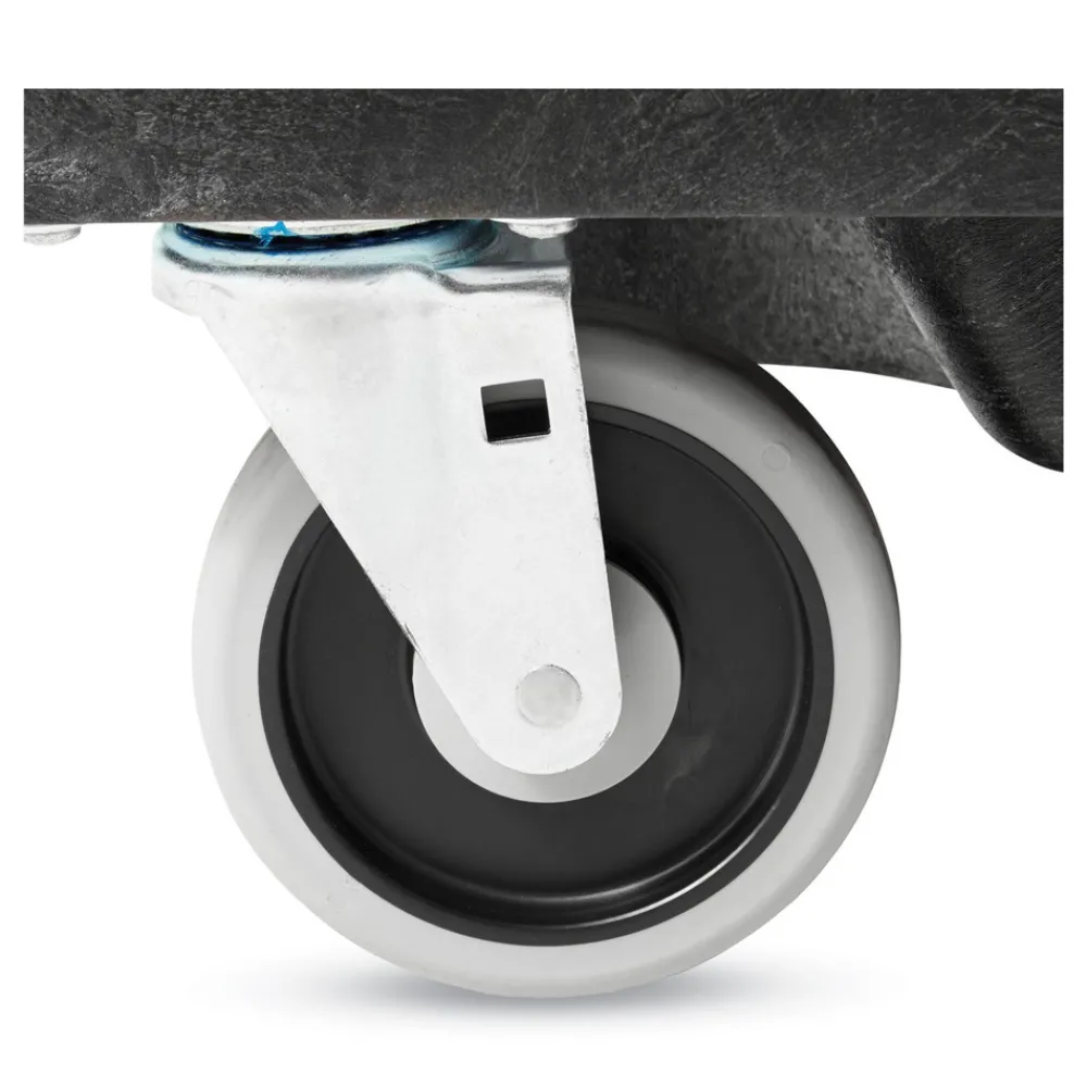 Molded tilt truck can be easily maneuvered by one person. Non-scuff casters won’t mark floors. Bin is easy to clean; minimal maintenance. Fits effortlessly onto service elevators. Optional domed lid is available.