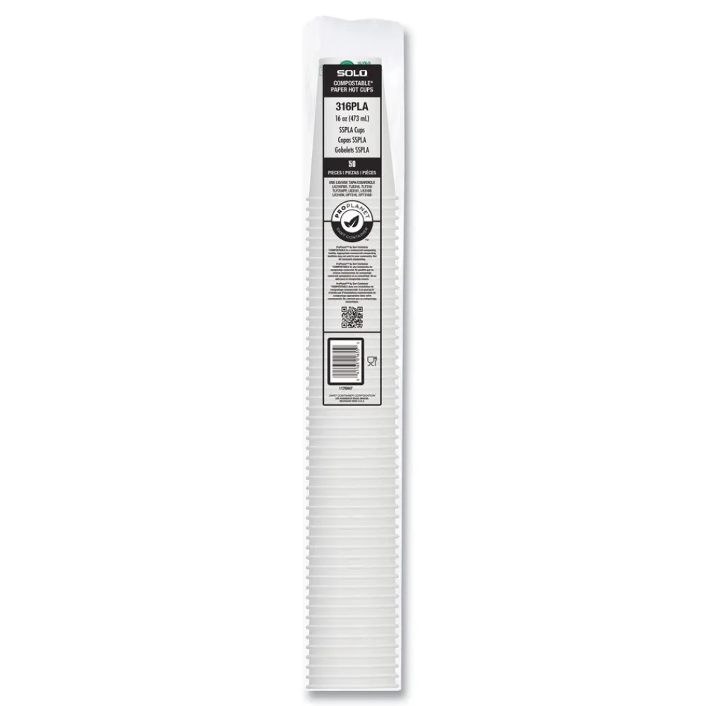 SOLO 316PLA-PLANET 16 oz Compostable Paper Hot Cups – White/Green (1000/Carton)