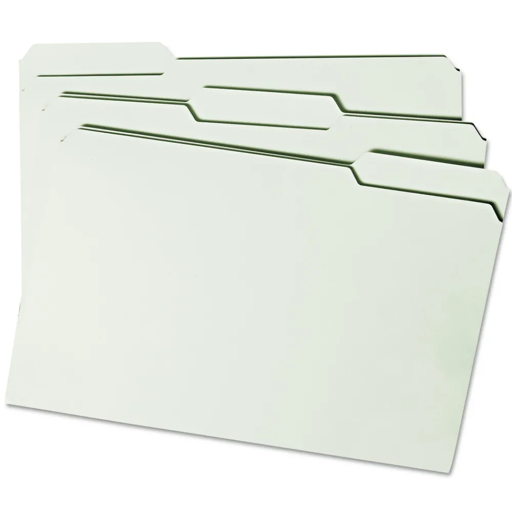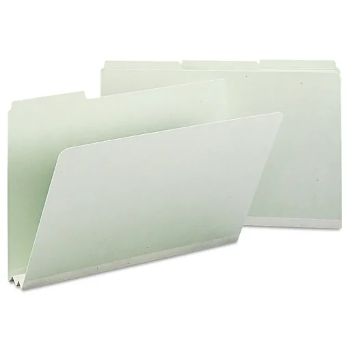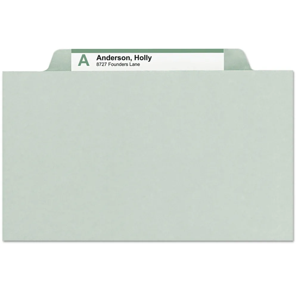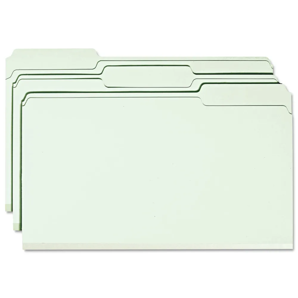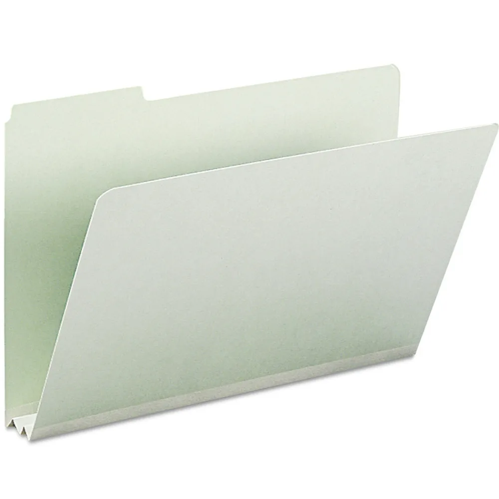 Smead 18234 2 in. Expansion Assorted 1/3-Cut Tabs Legal Size Expanding Recycled Heavy Pressboard Folders – Gray-Green (25/Box)
