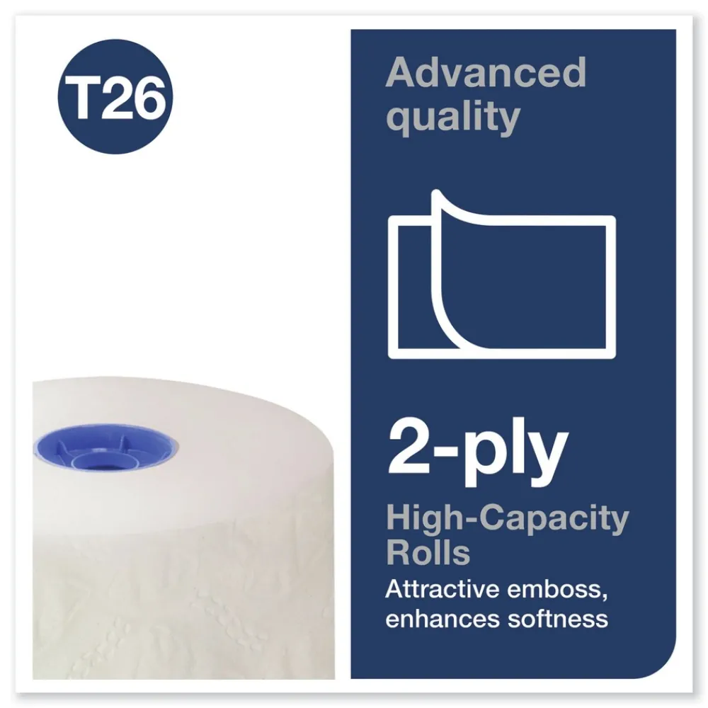 Tork® Advanced High Capacity Bath Tissue has twice the capacity for fewer restroom maintenance intervals and reduced risk of product run-outs for improved patron satisfaction. Provides hygienic dispensing while reducing waste and maintenance expense. This tissue is ideal for low to medium traffic washrooms with a high focus on guest satisfaction. Tork toilet paper has rapid breakup, ideal for all plumbing systems. All Tork bath tissue products are safe for septic systems.
