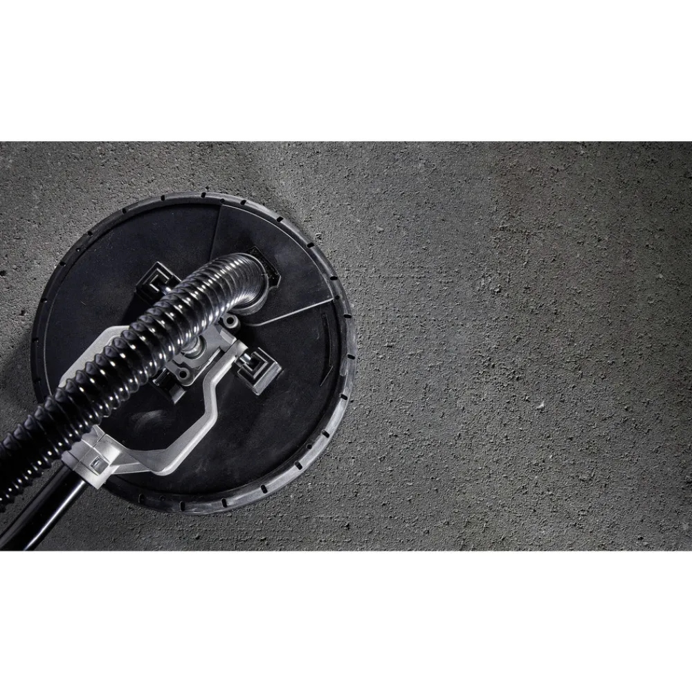 Achieve a smooth, polished finish with this 4.7 Amp Electric Drywall Sander. The variable speed dial and dual-action trigger provides control and versatility in a variety of applications. The 9 in. hook-and-loop sanding pad quickly connects to sanding paper and mesh, while the articulating head allows for better reach in workspaces. To efficiently remove dust in the workplace, this Electric Drywall Sander is equipped with an Airlock connection to securely attach to compatible DEWALT dust extractors.