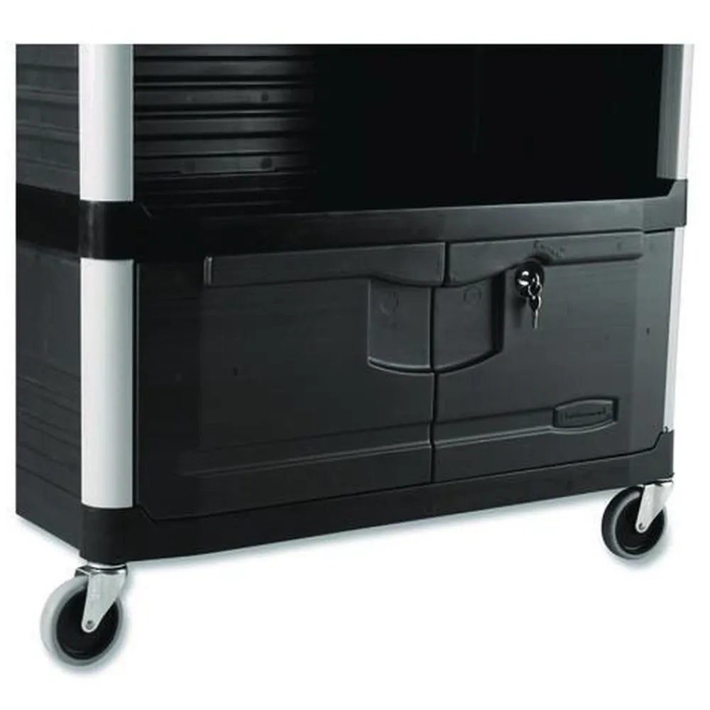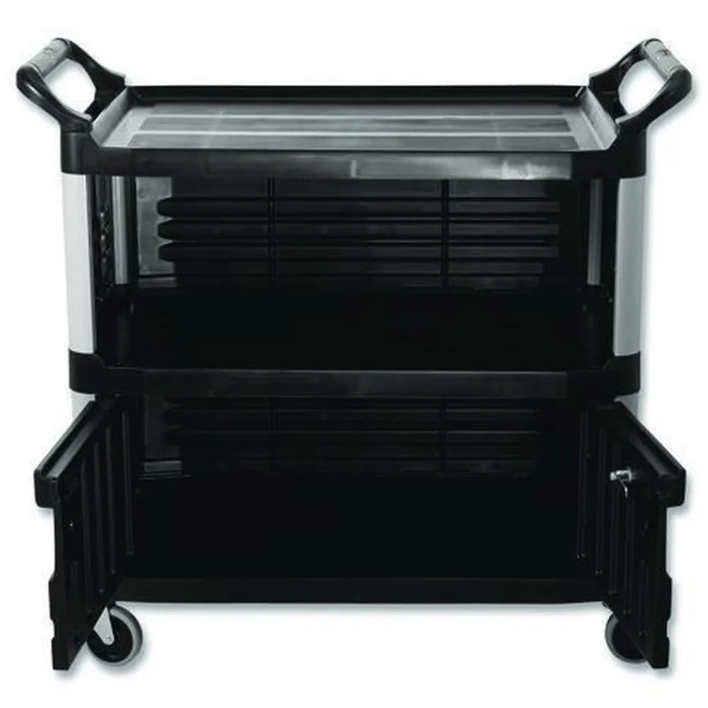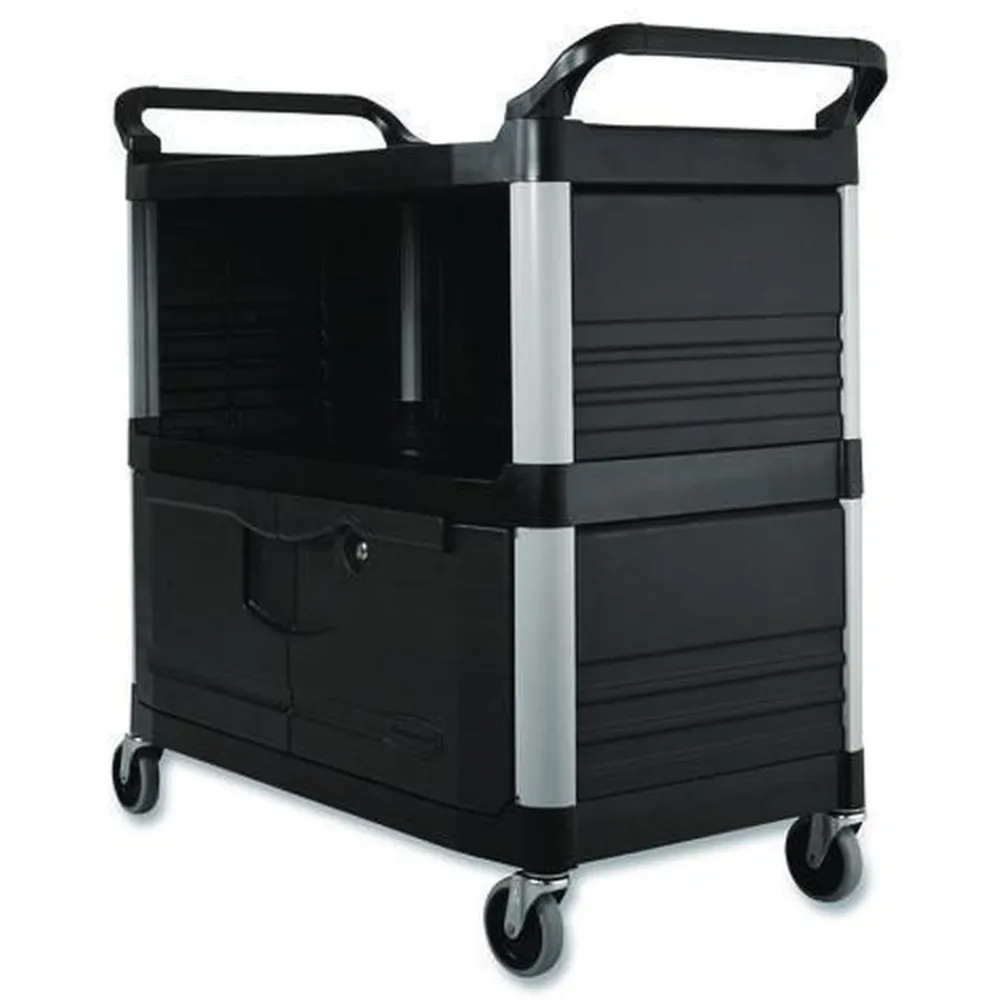 Rubbermaid Commercial FG409500BLA 40.63 in. x 20.75 in. x 37.81 in. 300 lbs. Capacity 3 Shelves Plastic Xtra Equipment Cart – Black