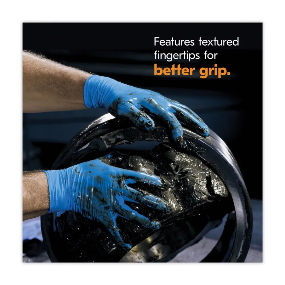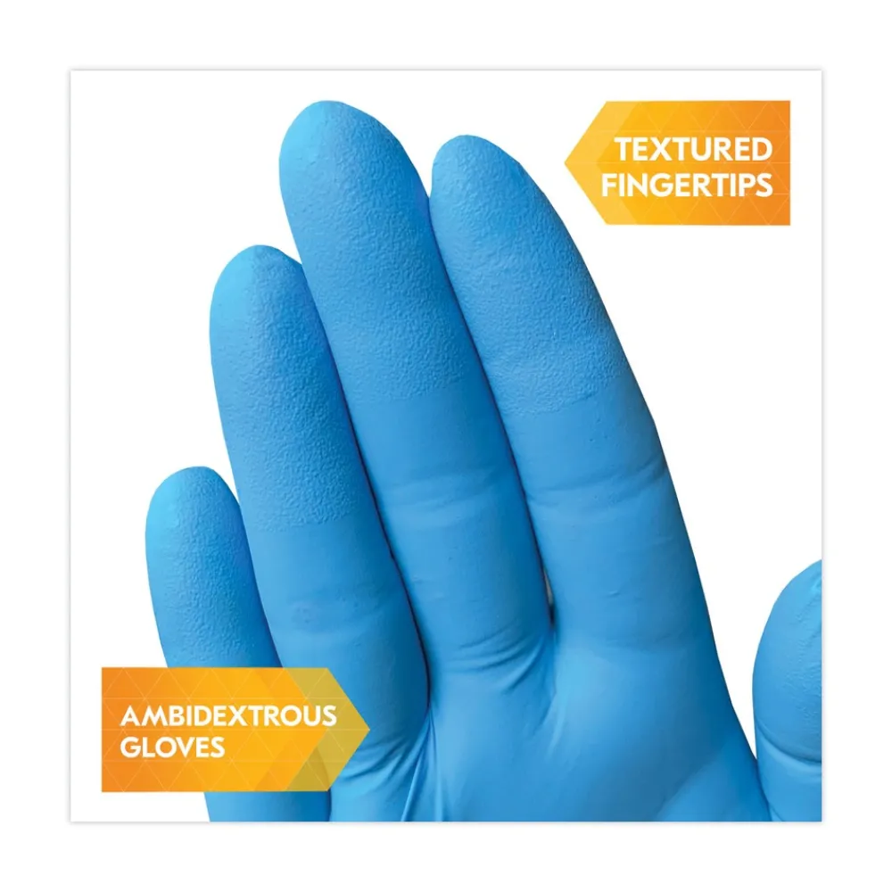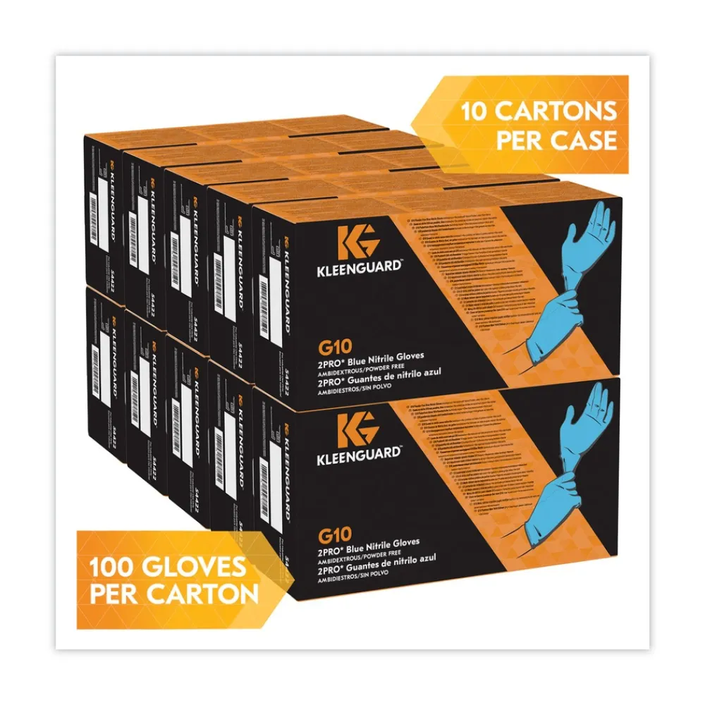 KleenGuard Personal Protective Equipment (PPE) enables rather than inhibits allowing for maximum productivity and safety for you and your employees. Your employees are your most valuable asset, and KleenGuard G10 2Pro Nitrile Gloves help keep them safe. Your employees can use them with confidence. Thanks to the smart design, these powder-free, ambidextrous, touchscreen compatible blue nitrile feature a 6 mil thickness for both comfort and protection. The textured fingertips give employees a grippable surface for dexterity while performing sensitive tasks. The beaded cuff helps prevent roll-down and makes the gloves easier to don. these gloves are available in a variety of sizes, are 9.5 in. long and are not made with natural rubber latex. These blue nitrile gloves are a leading choice across a variety of industries because they are comfortable to wear, provide excellent tactile sensitivity and deliver reliable protection for the task at hand. KleenGuard G10 2Pro Nitrile Gloves meet US FDA regulations for food contact applications. In addition, these gloves are recyclable through The RightCycle Program by Kimberly-Clark Professional. Making the right Personal Protection choice is difficult. Perform with distinction with KleenGuard Personal Protective Equipment (PPE).