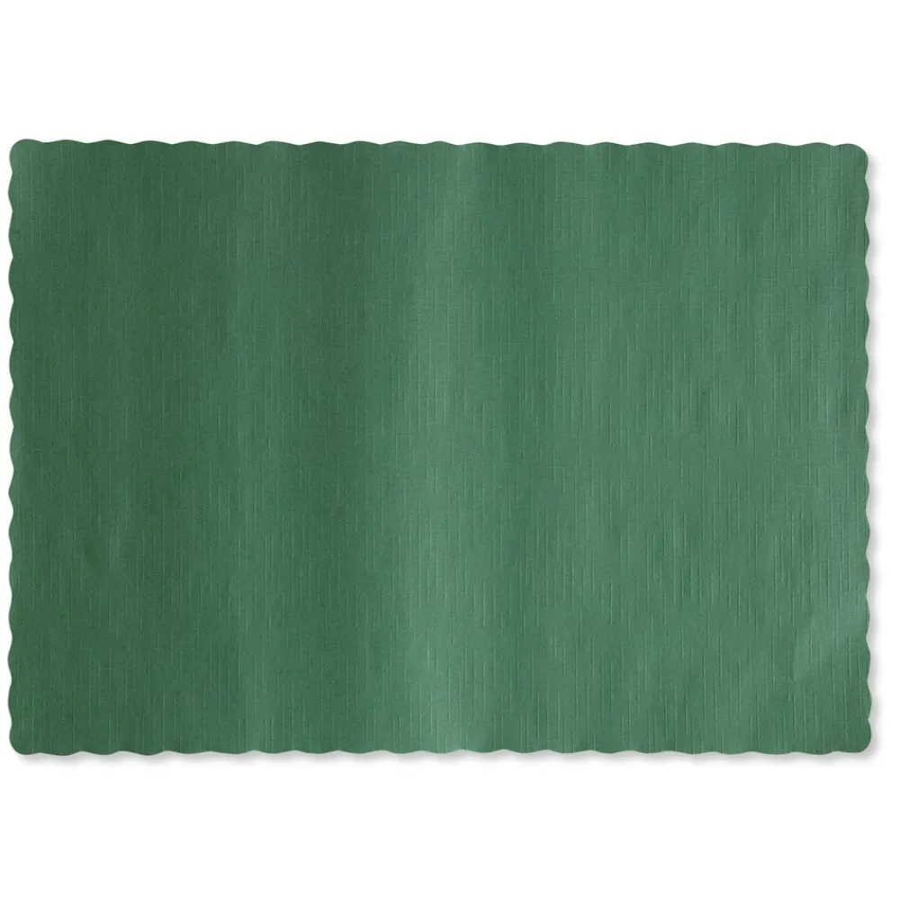 (1000/Carton) 9-1/2 in. x 13.50 Solid Color Scalloped Edge Placemats – Hunter Green – 310528