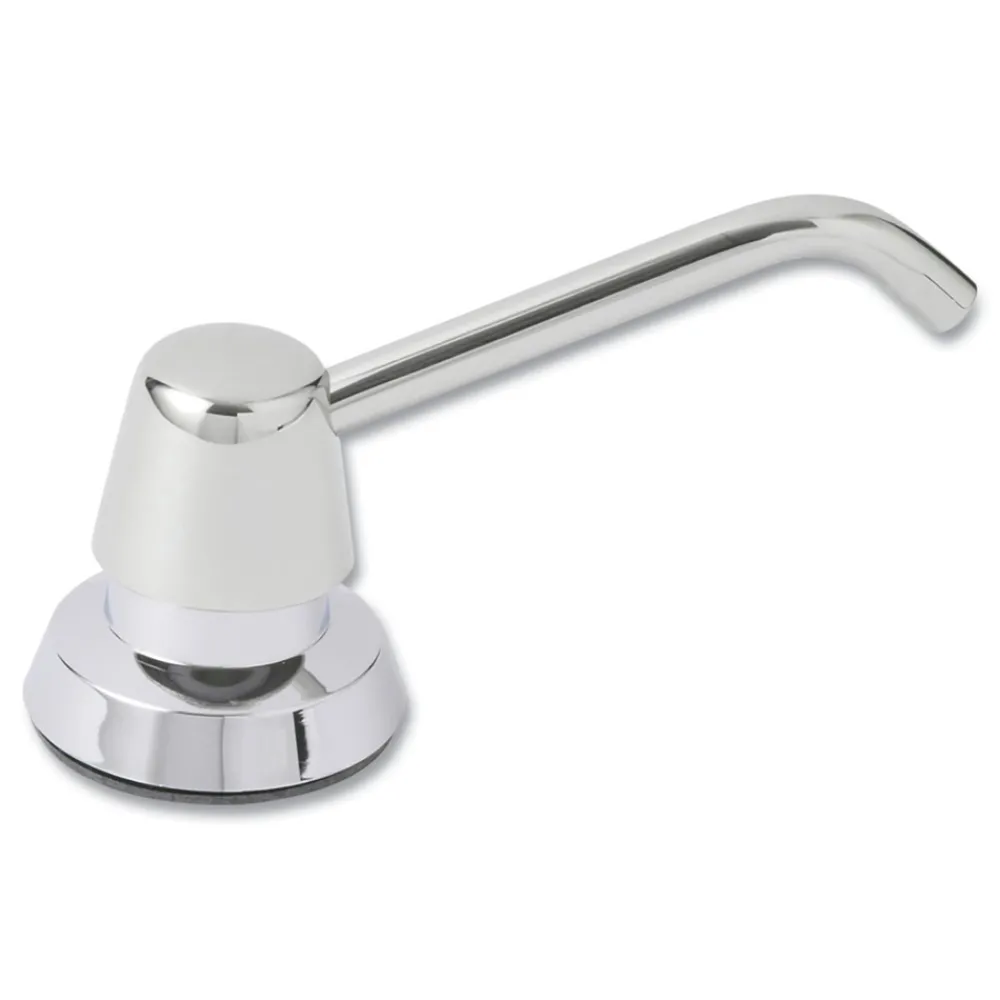 Mounts through 1″ diameter hole in lavatory or countertop. Top-filling, locking cover and free-turning spout design. Corrosion-resistant valve dispenses liquid soaps. 4″ spout, cover and escutcheon have bright polished finish; body and 4″ shank made of high impact-resistant ABS plastic. 34-fl. oz. capacity.