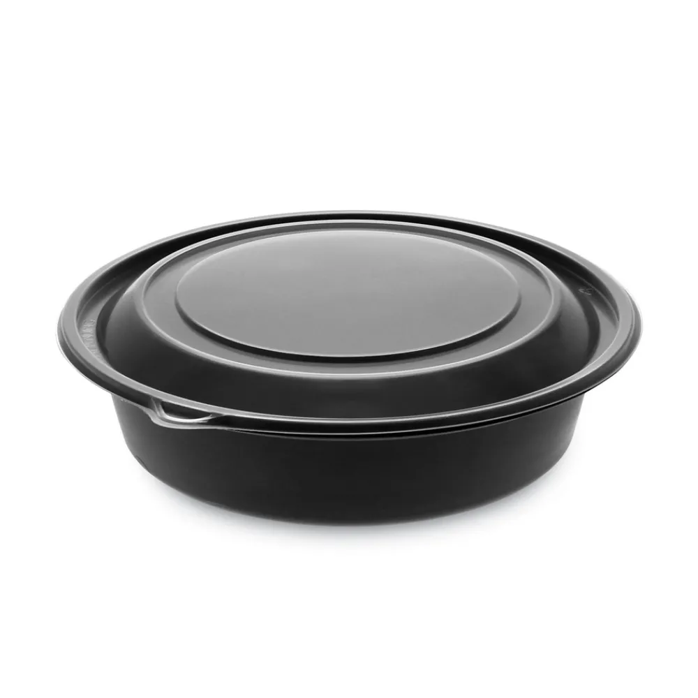 (250/Carton) EarthChoice MealMaster 8 in. Diameter x 2.12 in. H 32 oz. Plastic Container with Lid – Black/Clear – 0CN8083200BL