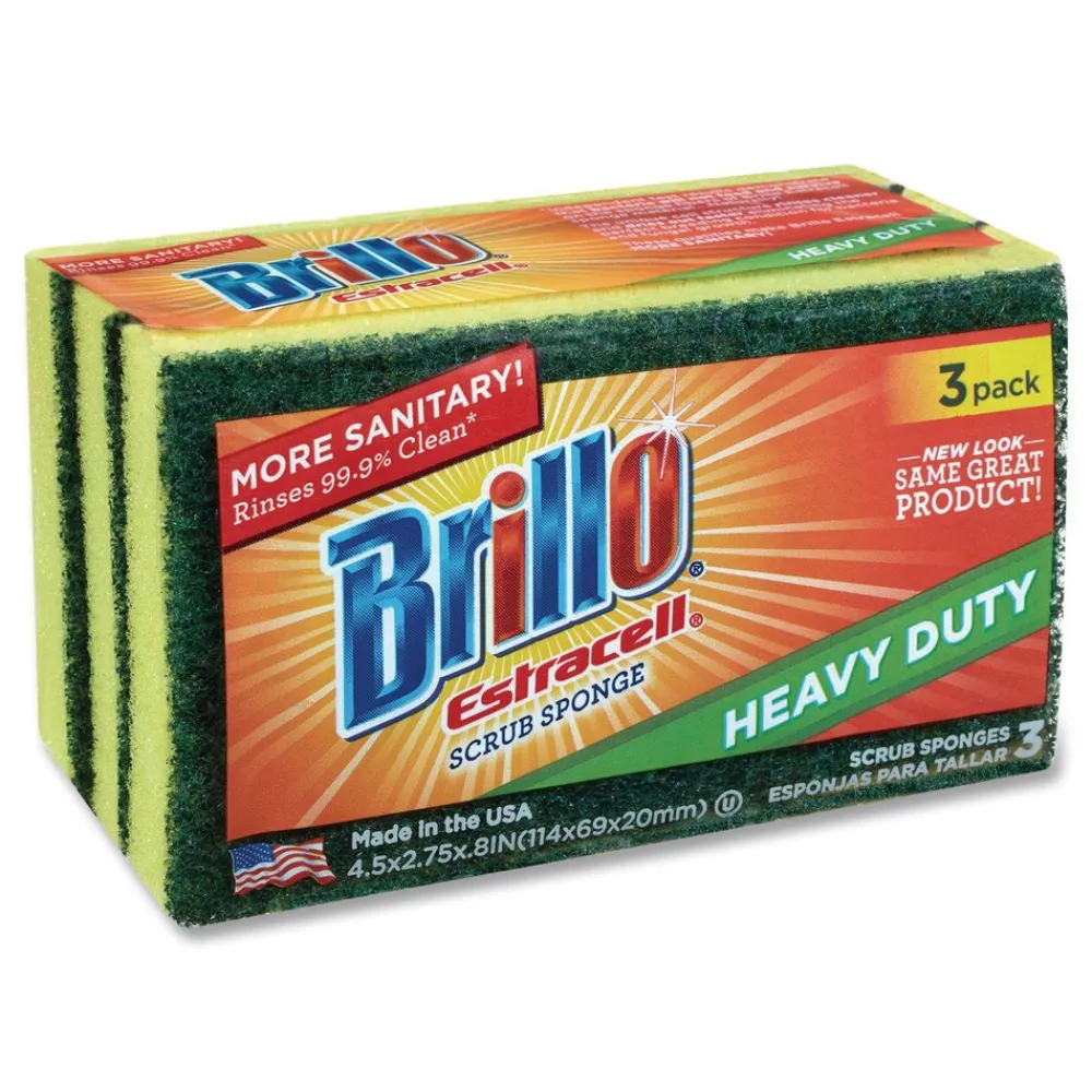 Brillo 21031 Estracell 4.5 in. x 2.75 in. Heavy-Duty Scrub Sponge – Yellow/Green (8/Carton)