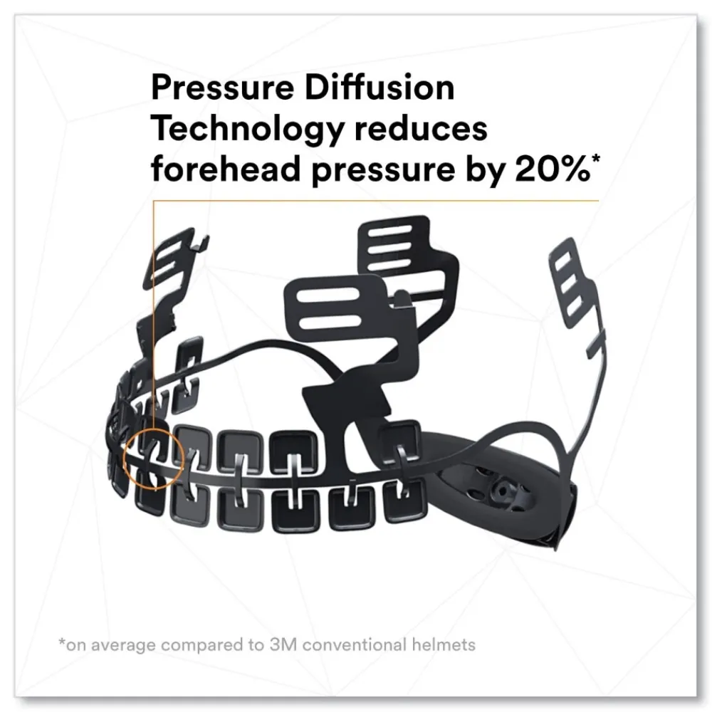 3M SecureFit X5000 Series Safety Helmets provide workers with a comfortable, secure fit that’s ideal for a variety of applications. Climbing helmet-inspired, brimless design with chin strap meets occupational safety requirements while helping the wearer maintain greater situational awareness by delivering an obstruction-free field of vision. Low-sitting suspension system minimizes pressure to the head, while its exclusive, patented Pressure Diffusion Technology allows the system to self-adjust to the wearer as the smooth, easy-turning ratchet is tightened. Multiple levels of height and head-shape adjustments allow the wearer to customize the fit even further. X5000 Series helmets meet ANSI safety compliance standards and are designed to protect the wearer’s head from small falling objects. All helmets are compatible with a variety of 3M face-shields, earmuffs and additional accessories (all sold separately).