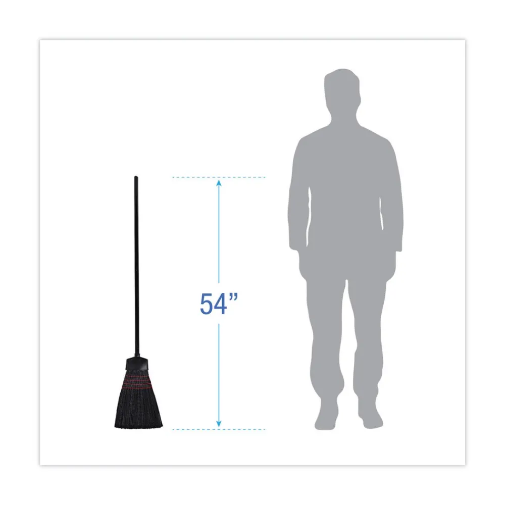 Convenient size maid broom for light-duty sweeping. Composed of a wooden handle with flagged-tip, long-lasting plastic bristles for added durability. The four rows of stitching and plastic shroud provided strength and dependability. Black color blends seamlessly into contemporary environments. Lightweight and portable for added mobility. Great for hotels, restaurants, lobbies, and household sweeping on a variety of floor types.