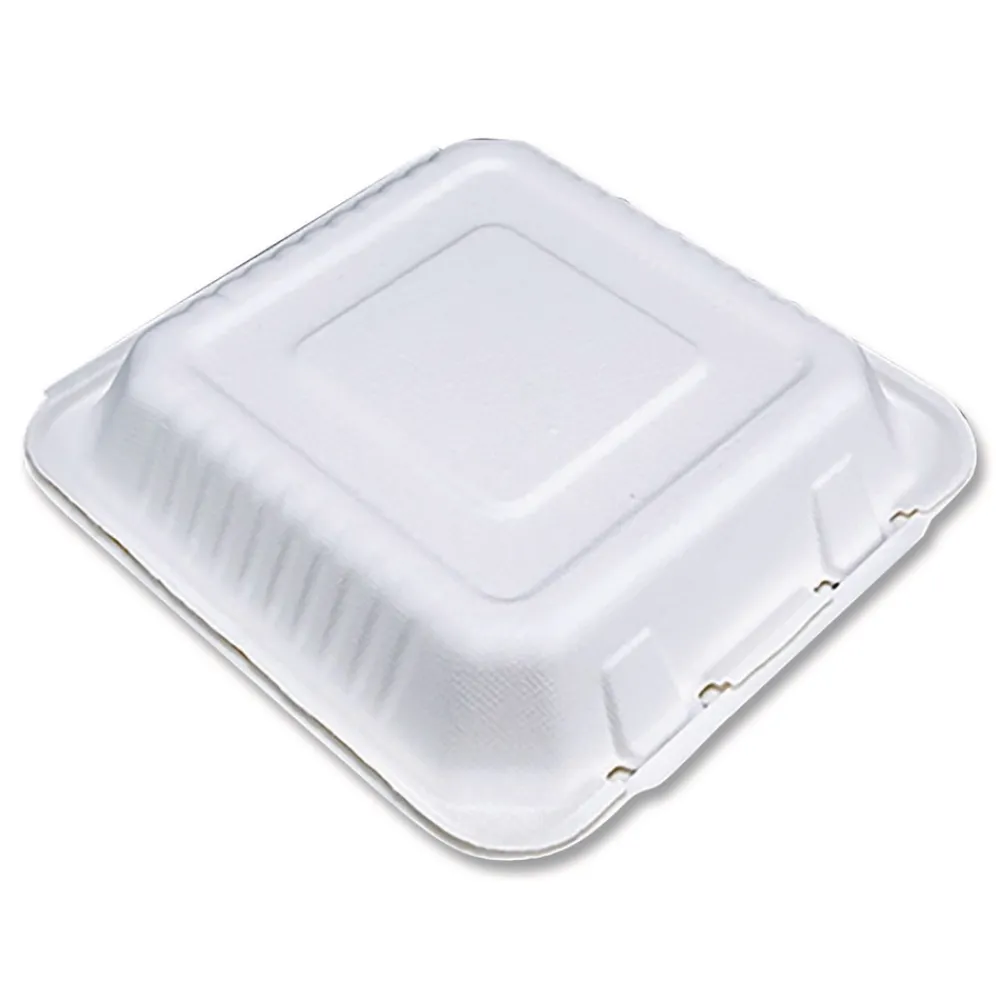 Show your customers how much you care when you choose durable bagasse molded-fiber containers. Heavyweight construction provides cut- and leak-resistant protection. Tab-lock closure minimizes the potential for messy in-transit openings.