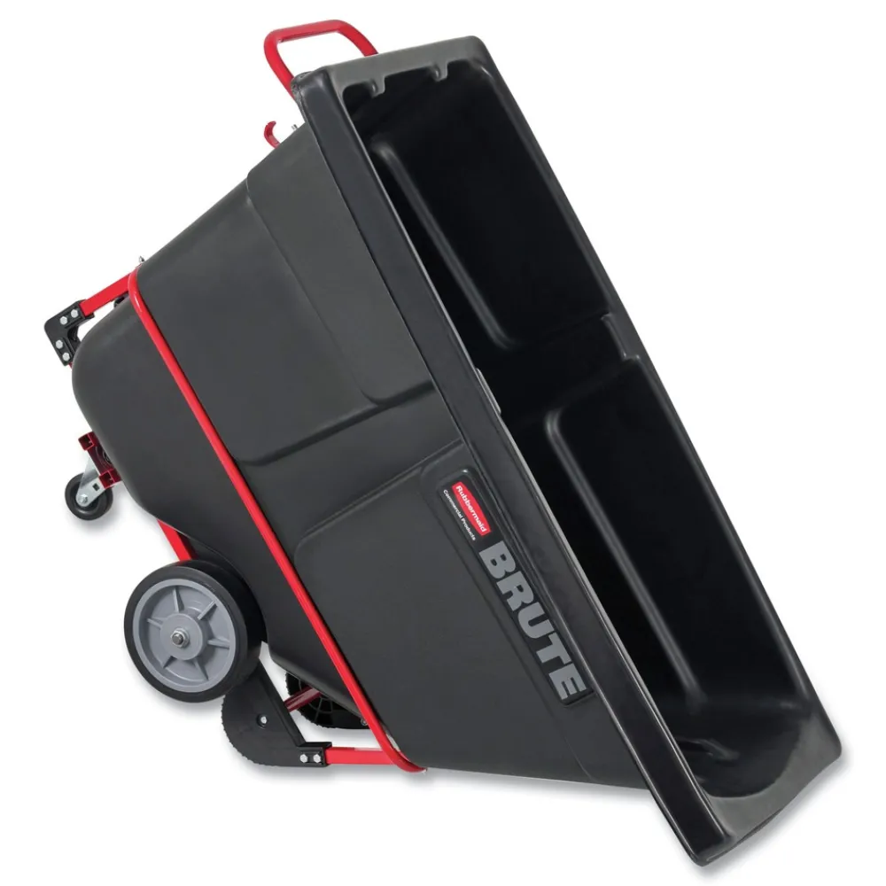 Wheels provide easy push-pull maneuverability, while the truck design allows controlled dumping by one person