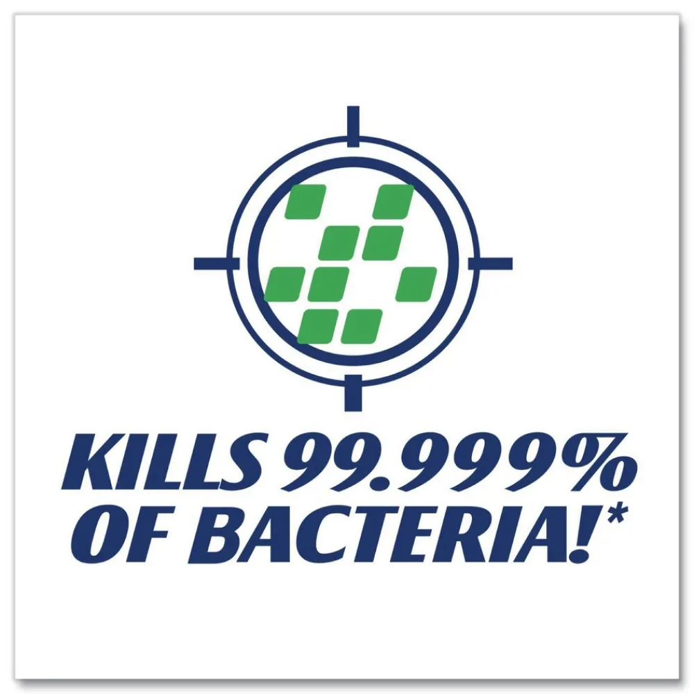 Kills 99.999% of bacteria without soap and water in as little as 15 seconds.