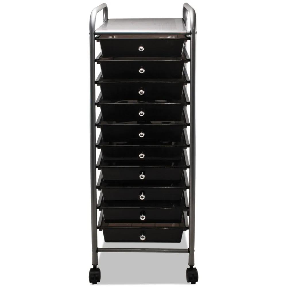 Advantus 34007 1 Shelf 10 Drawers 13 in. x 15.38 in. x 37.75 in. Metal Portable Drawer Organizer – Matte Gray/Smoke