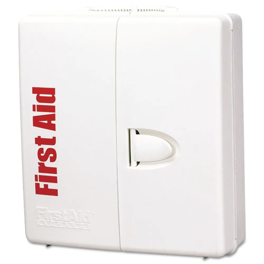 This general business kit is ideal for businesses, offices and worksites. The swing-out door and easy-to-carry handle add extra convenience. Clearly labeled compartments create a cabinet that is easy to use and restock. Expansion pocket allows you to customize your cabinet to meet your needs. This unique cabinet design eliminates disorganized and missing supplies. Conveniently wall mountable.