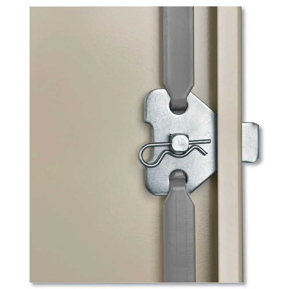 Commercial grade steel storage cabinet. Built with premium quality steel and reinforced doors for long-term performance at an attractive price. Polished chrome handle uses three-point keyed locking to lock both doors. Storage cabinet is electrostatically painted with a tough, long lasting powder finish to ensure years of lasting beauty.
