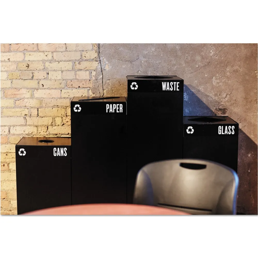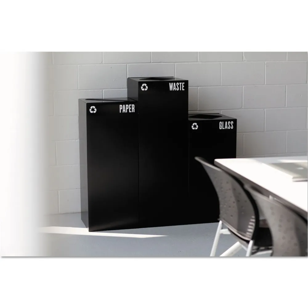 Encourage recycling in every workspace setting with these high capacity recycling receptacles. Attractive heavy-gauge steel containers feature a protective powder coat finish for durability. Interior catch-wires conveniently secure plastic liners in place. (Slotted lids and liners sold separately.) Different heights allow for easy configuration and visibility.
