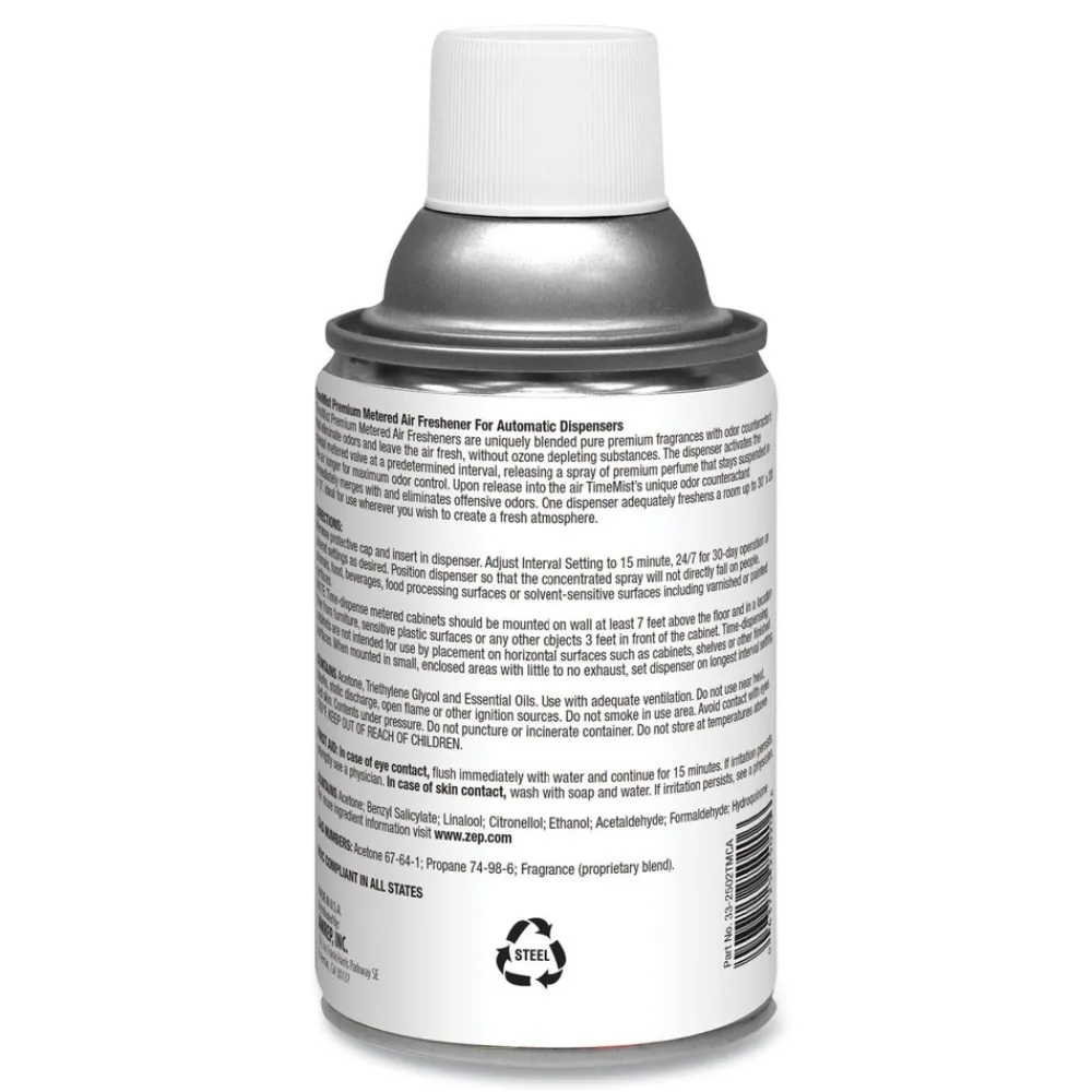 Complex high quality fragrance with essential oils and dual odor counteracts ensuring 30 day long lasting experience. For use with TimeMist Metered Aerosol Dispensers (sold separately).