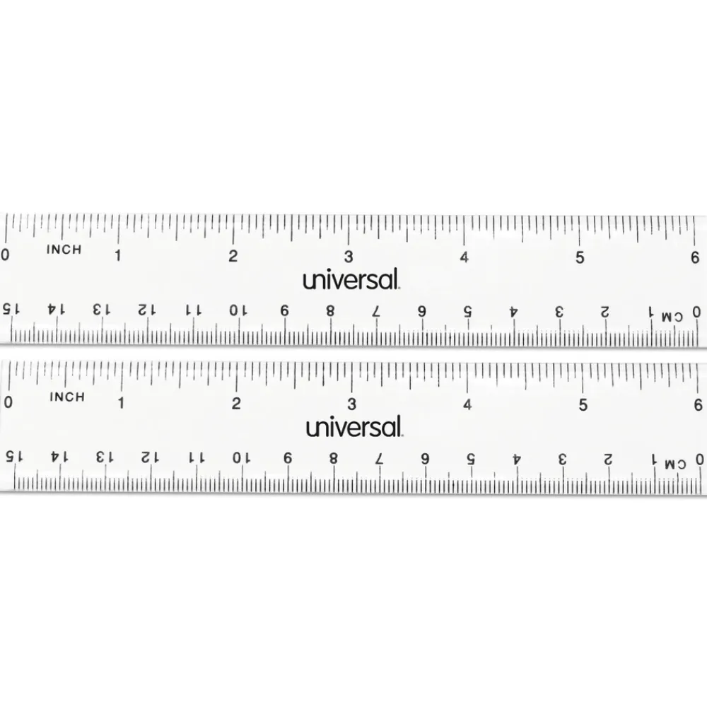 Universal UNV59025 6 in. Long Standard/Metric Plastic Ruler – Clear (2/Pack)