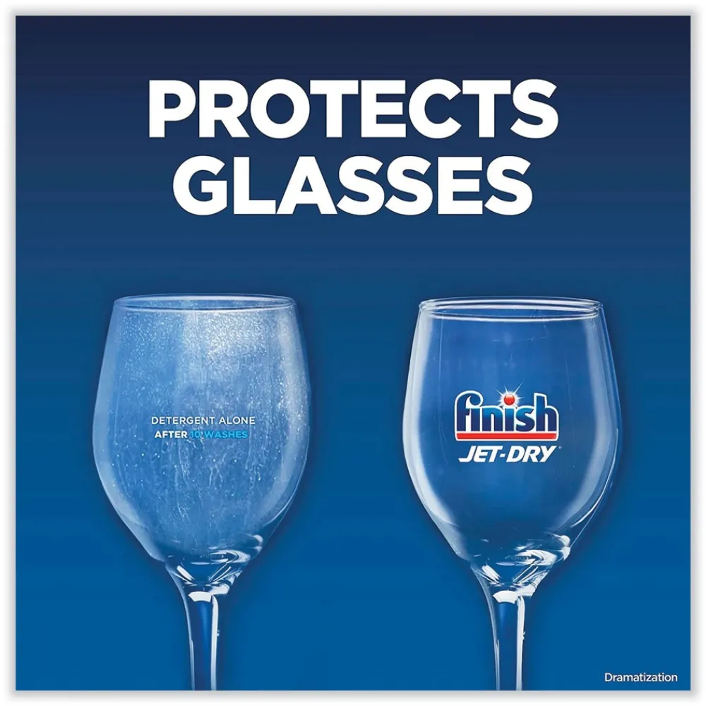 Simply fill your machine’s rinse aid compartment with Finish Jet-Dry 3-in-1 to solve three problems at onceit rinses, dries, and shines what detergent alone can’t! Rinses away leftover food and film. Dries left behind water droplets. Clears spots for a brilliant shine. Easy to use, simply refill the rinse aid compartment every few weeks, not every wash.