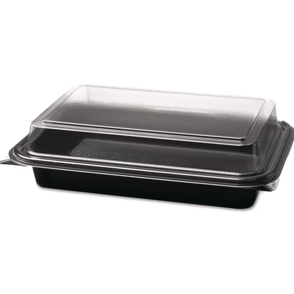 SOLO 844012-PM94 Creative Carryouts 8.75 in. x 6.2 in. x 2.2 in. Hinged Plastic Hot Deli Boxes – Black/Clear (200/Carton)