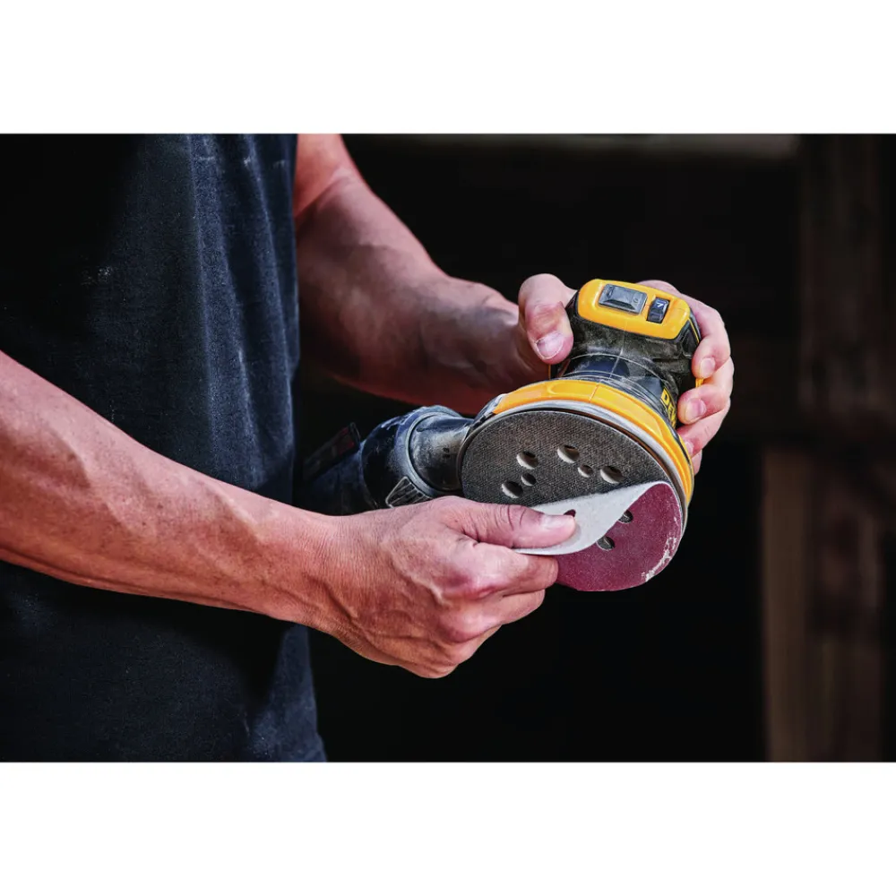 Our 20V MAX XR Brushless 5 in. Cordless Random Orbital Sander provides you with the power and runtime needed to get the job done. A variable-speed dial provides ultimate speed control from 8000 -12000 OPM for a variety of projects. One-handed locking dust bag attaches securely to the sander to aid in dust collection or the user can attach the sander directly to the DWV010 or DWV012 dust collectors. Rubber overmold grip provides comfortable sanding. Replacement 8-hole hook-and-loop sanding pad for quick, easy paper changing.