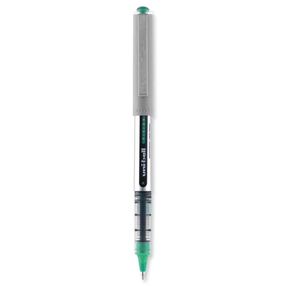 uni-ball 60386 Fine 0.7 mm VISION Stick Roller Ball Pen – Green Ink, Silver/Green/Clear Barrel (1-Dozen)
