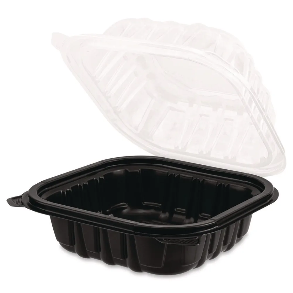 Karat FP-PHC66PP-1C Polypropylene Plastic Hinged Container 6 x 6 x 3 Black/Clear Plastic 50/Pack 6 Packs/Carton