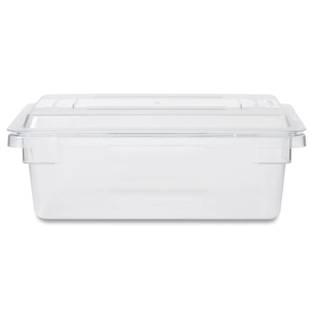 The Rubbermaid Commercial Food Storage Lid for Food Tote Box helps reduce food spoilage costs. The food storage container lid is a tight-fitting, snap-on lid with stacking ribs. This bulk food storage container lid reduces risk of cross-contamination, secures storage while stacked, and can be used as tray when displayed upside down.