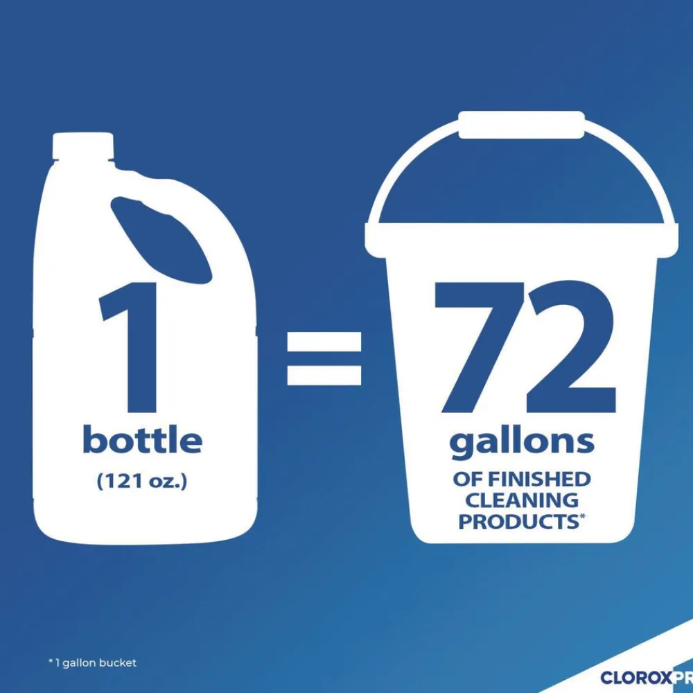 Show those germs who’s boss with Clorox Germicidal Bleach from CloroxPro. This bleach is EPA-registered to kill 39 organisms, including multiple strains of MRSA, norovirus, flu virus, E. Coli, listeria and Salmonella when used as directed on countertops, floors, toilets and more. It meets EPA criteria for use against SARS-CoV-2, the virus that causes COVID-19. This 121 ounce bottle of bleach makes 30 gallons of germ busting cleaning solution to remove stains and kill mold and mildew. Clorox Germicidal Bleach also can be used in the laundry room to make whites whiter. It removes the toughest laundry stains from white clothes including red wine, grass, dirt and blood stains. It is safe to use in standard and high-efficiency washing machines. Ideal for use in busy healthcare environments, offices, schools and other commercial facilities. CloroxPro, where clean means everything. Packaging may vary.