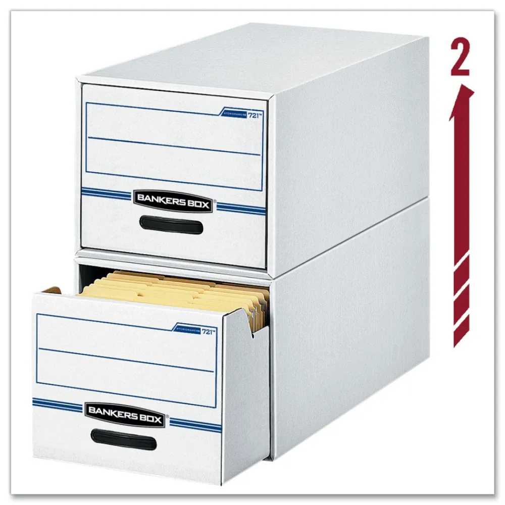 Bankers Box 00722 16.75 in. x 19.5 in. x 11.5 in. STOR/DRAWER Basic Space-Savings Storage Drawers for Legal Files – White/Blue (6/Carton)