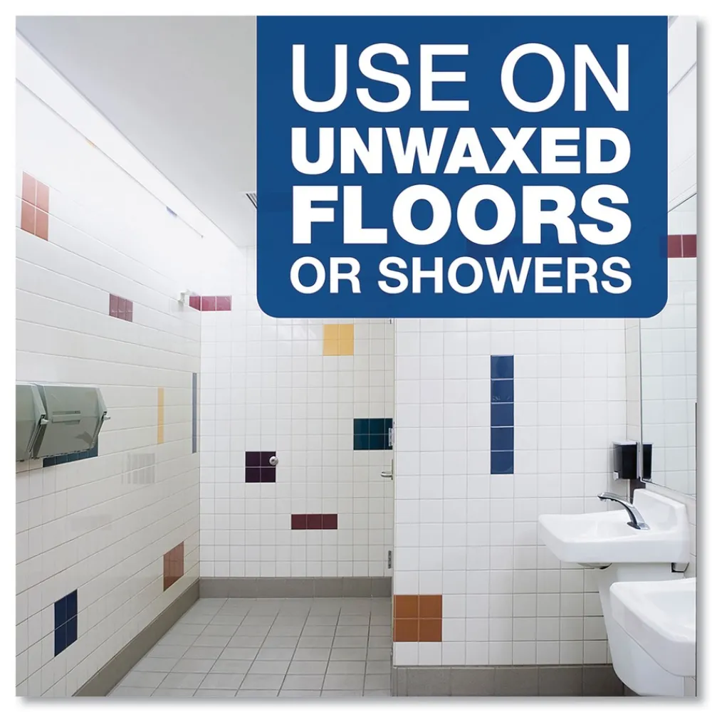 This heavy-duty powder floor cleaner with the power of built-in bleach helps keep bathrooms clean and germ free. Plus, two-in-one cleaning and sanitation saves time and labor. Single-dose concentrated packets each make four gallons of cleaning product.