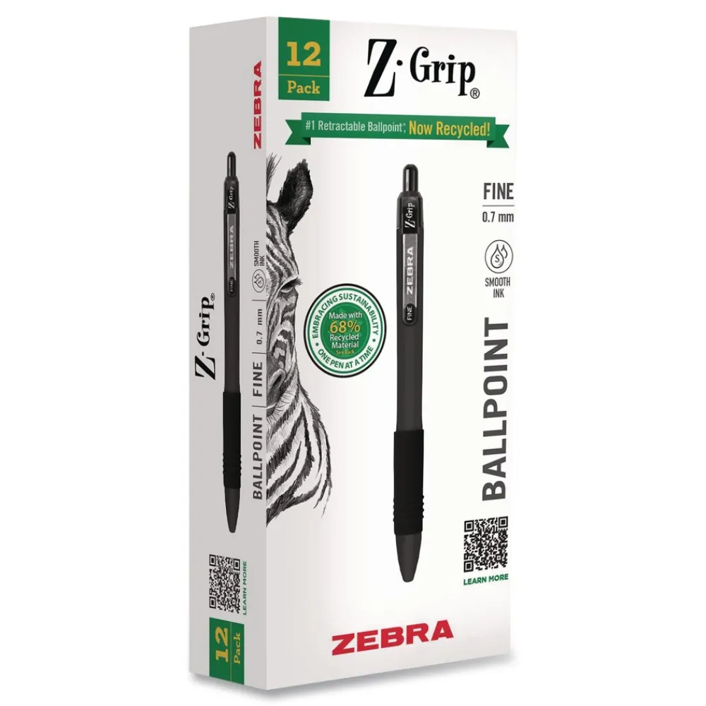 The Z-Grip Retractable Ballpoint Pen you love-now made with recycled materials. Enjoy the same smooth ink flow and comfortable grip. Designed for effortless writing, Z-Grip Recycled features a soft latex-free grip for all-day comfort and a precise tip for crisp, clean lines. Whether you’re taking notes, journaling or tackling daily tasks, this pen delivers a premium writing experience at an affordable price. At Zebra, sustainability is a commitment. From solar-powered manufacturing to PVC-free packaging and 100 percent recyclable blister cards and dozen boxes. Z-Grip Recycled is the perfect pen for work, school, or everyday writing-because quality and sustainability should always go hand in hand.