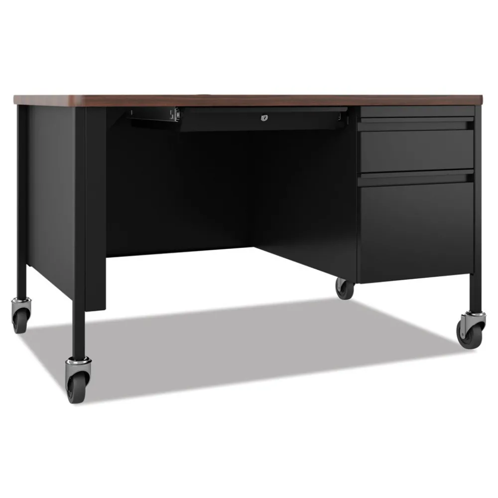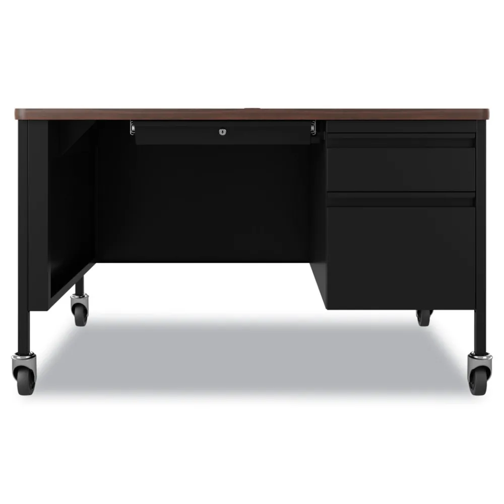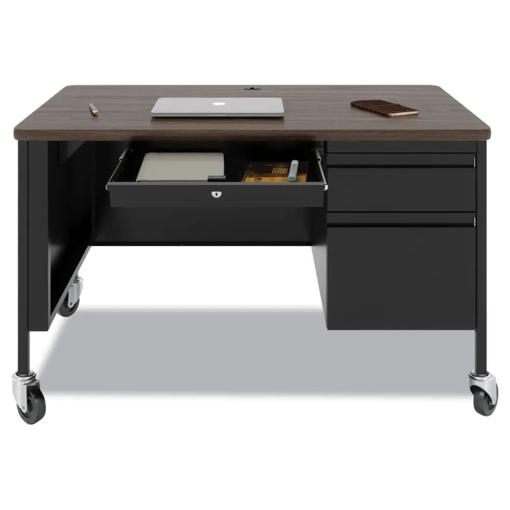 48 in. x 30 in. x 29.5 in. Right-Hand Pedestal Box/File Drawers Mobile Teachers Pedestal Desks – Walnut/Black – 22656