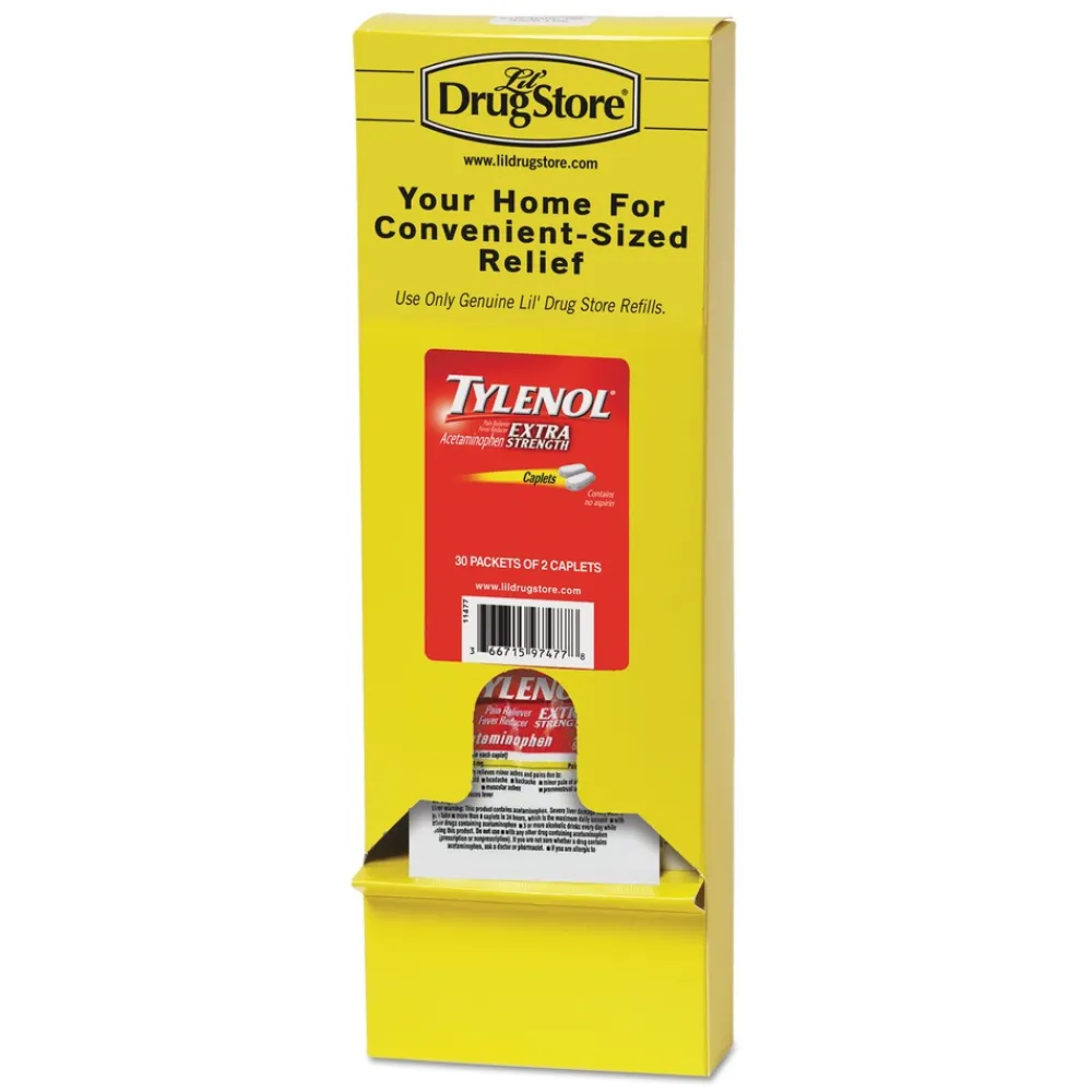 Works fast to relieve headache pain. Won’t upset your stomach. Reduces fever. Smooth, easy-to-swallow caplets. Packaged for quick refill of Lil’ Drugstore Medicine Dispensers (sold separately) or for other use.