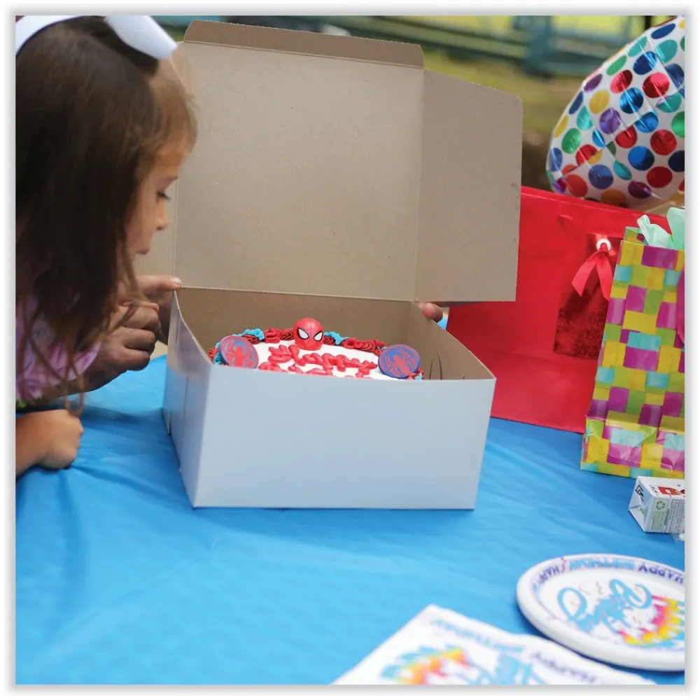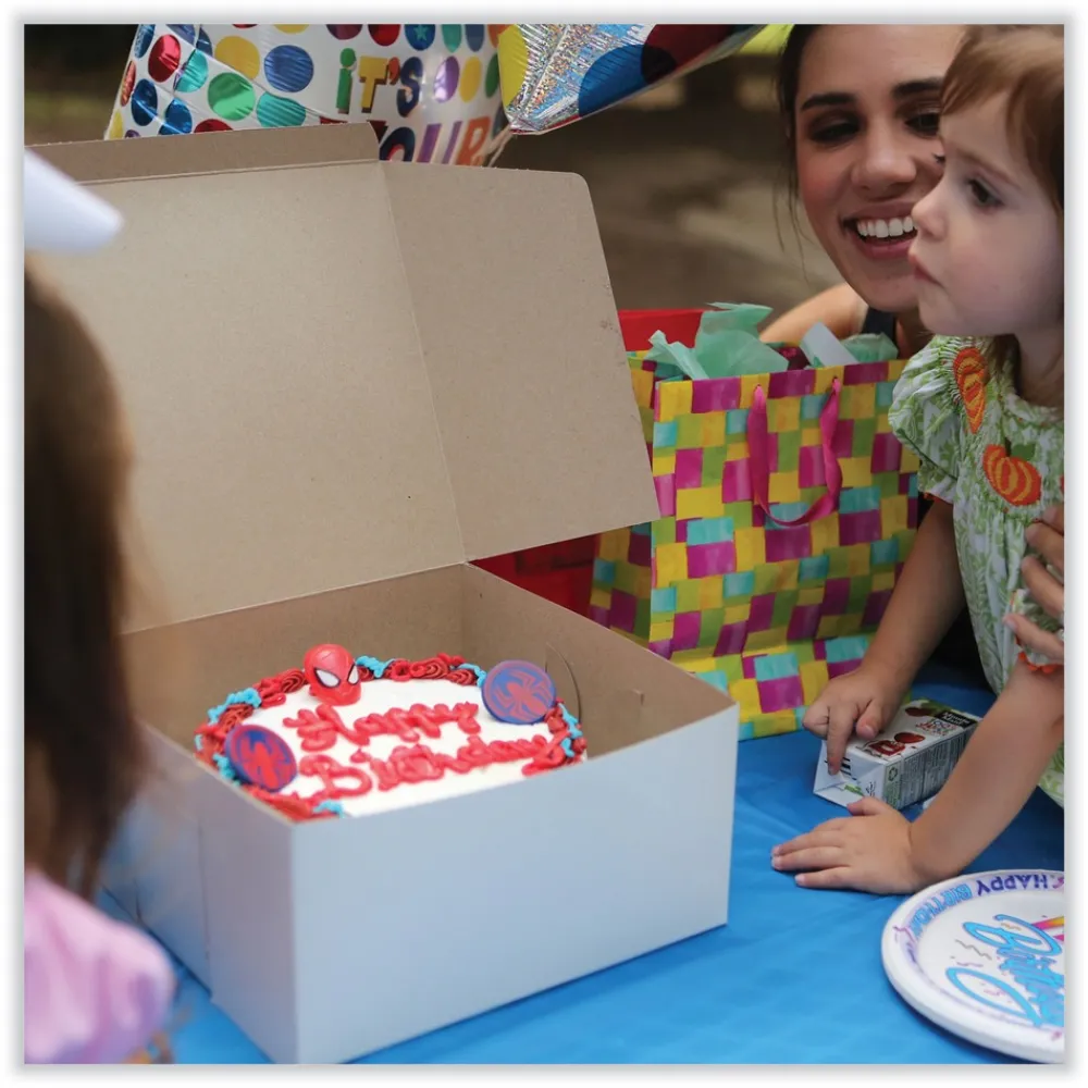 Traditional bakery boxes with locking corners ensure that your cookies and cakes arrive at their destination safe and sound. A tuck-in top creates a secure closure, protecting your baked goods. Convenient one-piece construction makes boxes easy to assemble. Sturdy paperboard bakery boxes provide an attractive presentation at an economical price.