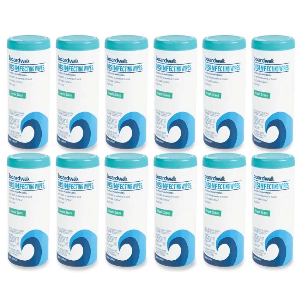 Boardwalk BWK454W35 7 in. x 8 in. Disinfecting Wipes – Fresh Scent (12 Canisters/Carton)