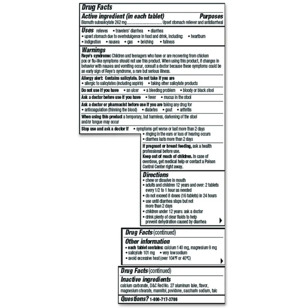For multi-symptom relief from heartburn, indigestion, upset stomach, nausea and diarrhea, choose Pepto-Bismol. Quick-acting chewable tablets.