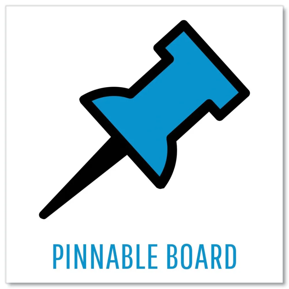 Durable, thick and resilient cork bulletin surface never shows pin holes.