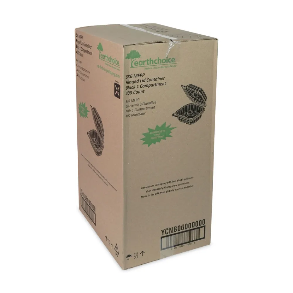 (400/Carton) EarthChoice 5.75 in. x 5.95 in. x 3.1 in. Microwavable MFPP Plastic Hinged Lid Container With SmartLock – Black – YCNB06000000