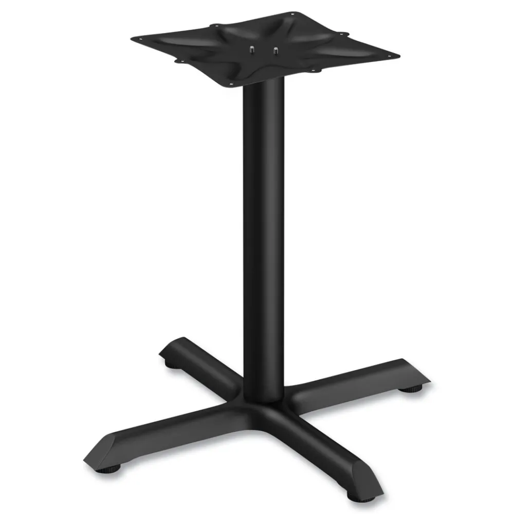 Classic table bases work great to create hospitality, meeting, conference, or quick-huddle setups. Constructed with a reinforced steel base and a single column for stability. The X-shaped base provides room to pull up chairs or stools and allows for ample leg room. Built-in leveling glides help compensate for uneven floor surfaces. Designed for use with Alera Reversible Laminate Tabletops. Tops and bases sold separately – Order both.