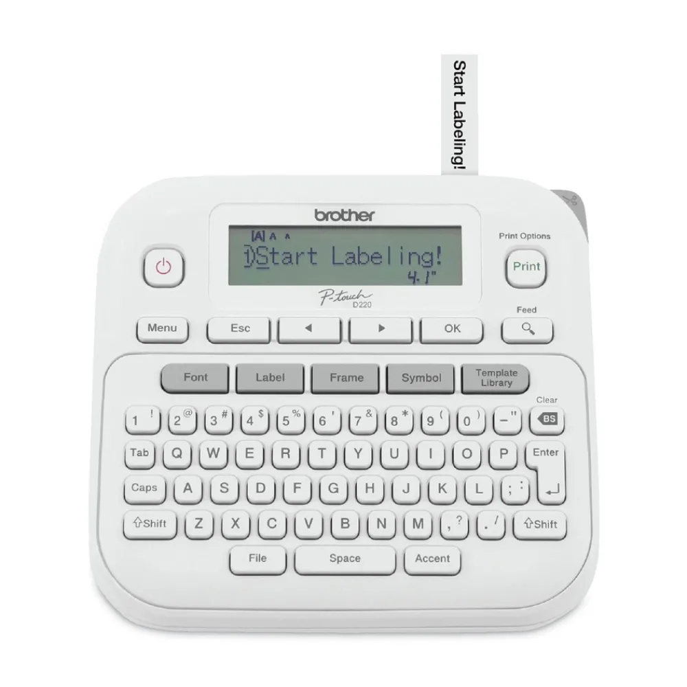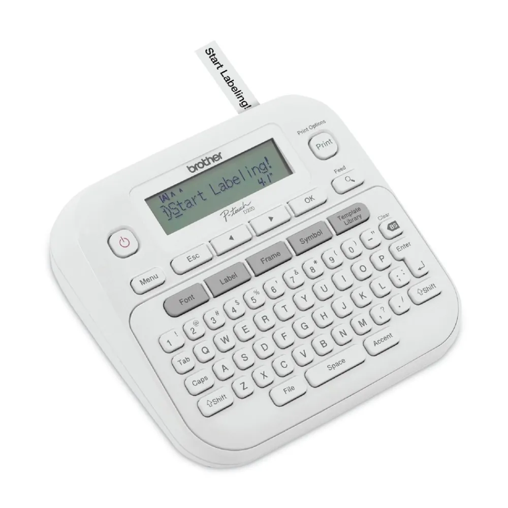 Chaos? Meet organization. The Brother P-touch PT-D220 Home/Office Everyday Label Maker is the easy way to clear clutter from any home or office area. Featuring a QWERTY keyboard and one-touch formatting keys, this desktop label maker is a hero of organization. Create calm in cupboards, restore order to your home office files, or organize your desk to perfection. Mastering your organizational to-do list couldn’t be any easier or more satisfying. For use with a variety of TZe label tapes. Requires six AAA batteries or AC Adapter (both sold separately).