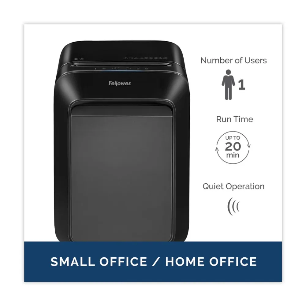 The Fellowes LX180 cross-cut shredder is thoughtfully designed and includes the groundbreaking new IntelliBar feature with patented responsive technology that is 100 percent Jam Proof, allowing you to shred safely and quietly with maximum protection, productivity and convenience. Effortlessly power through paper jams with 100 percent Jam Proof technology. Monitor real time performance with bin full and runtime indicators. Optimize how many sheets to feed at one time with the efficiency meter. The integrated patented SafeSense technology keeps shredding safe and accident free, especially around children and pets and leverages an elevated design that brings distinction to any work environment. The LX180 shreds 16 sheets of paper per pass into small cross-cut particles for enhanced security (Security Level P-4). In addition to paper, it also destroys staples, paper clips and plastic credit cards. The LX180 shreds continuously for up to 20 minutes allowing you to complete your shredding job in one sitting. Includes spacious 6 gallon pull-out bin that holds over 400 shredded sheets.