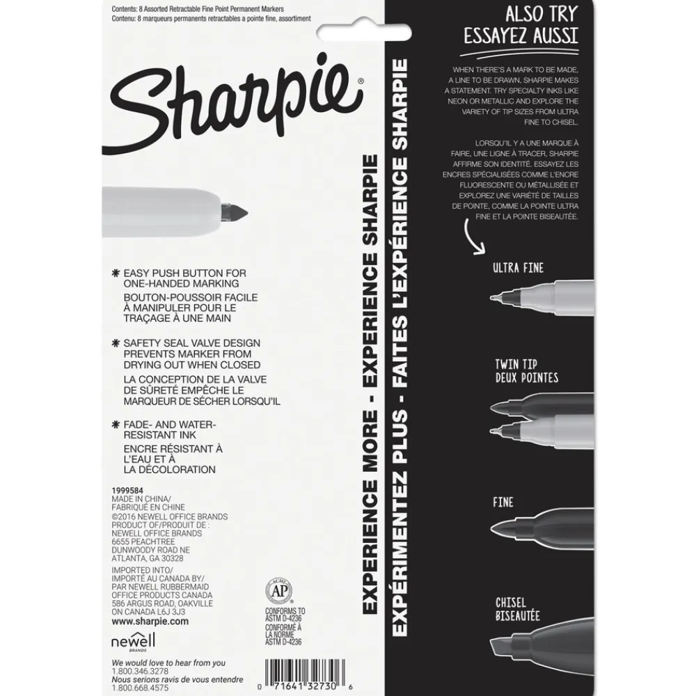 Sharpie 32730PP Retractable Permanent Marker – Assorted Colors/Fine Bullet Tip (8/Set)