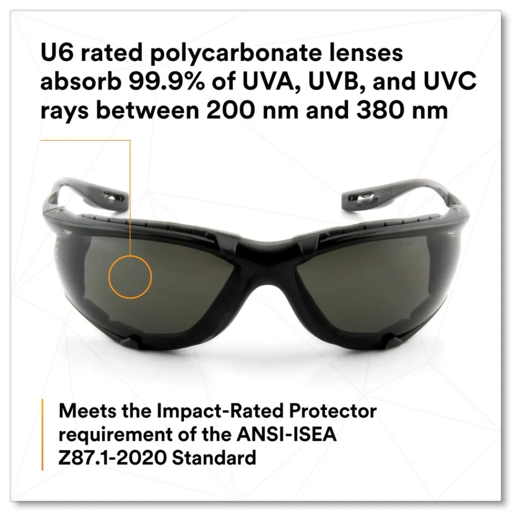 3M 11873-00000-20 Virtua CCS Protective Eyewear with Foam Gasket – Black/Gray Plastic Frame Gray Polycarbonate Lens